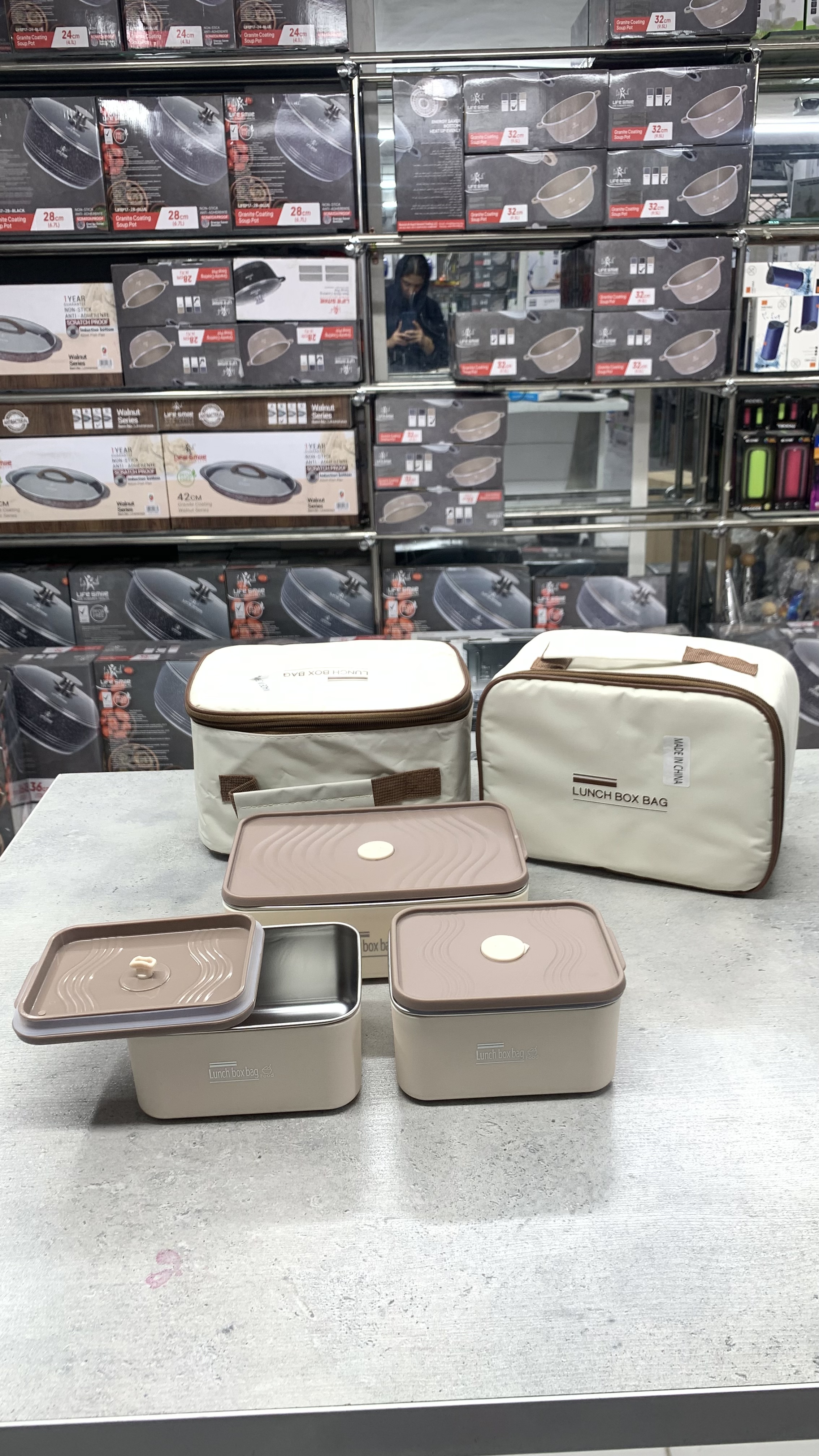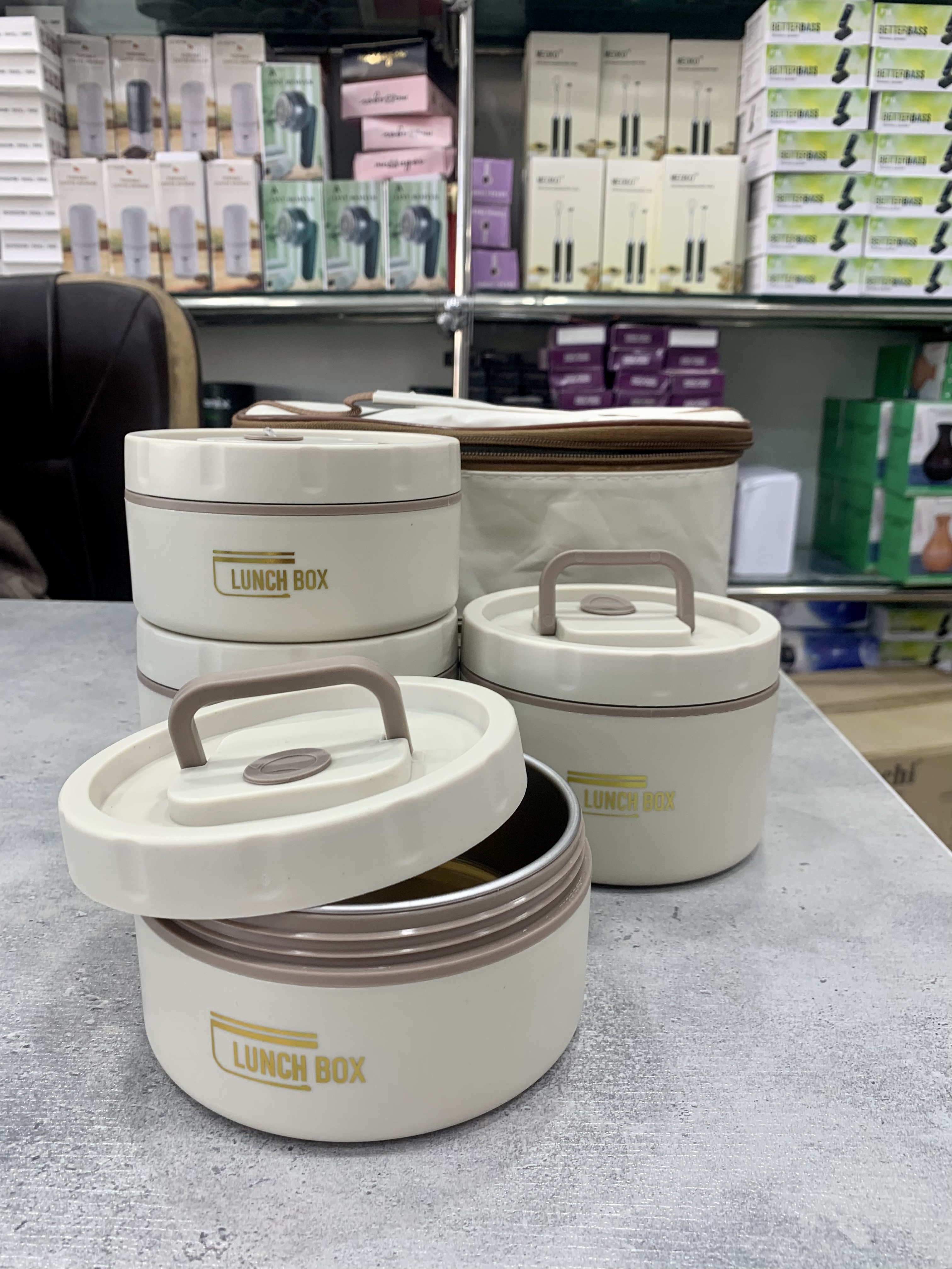 لانچ باکس سه تیکه داخل استیل کیف دار مستطیلی
